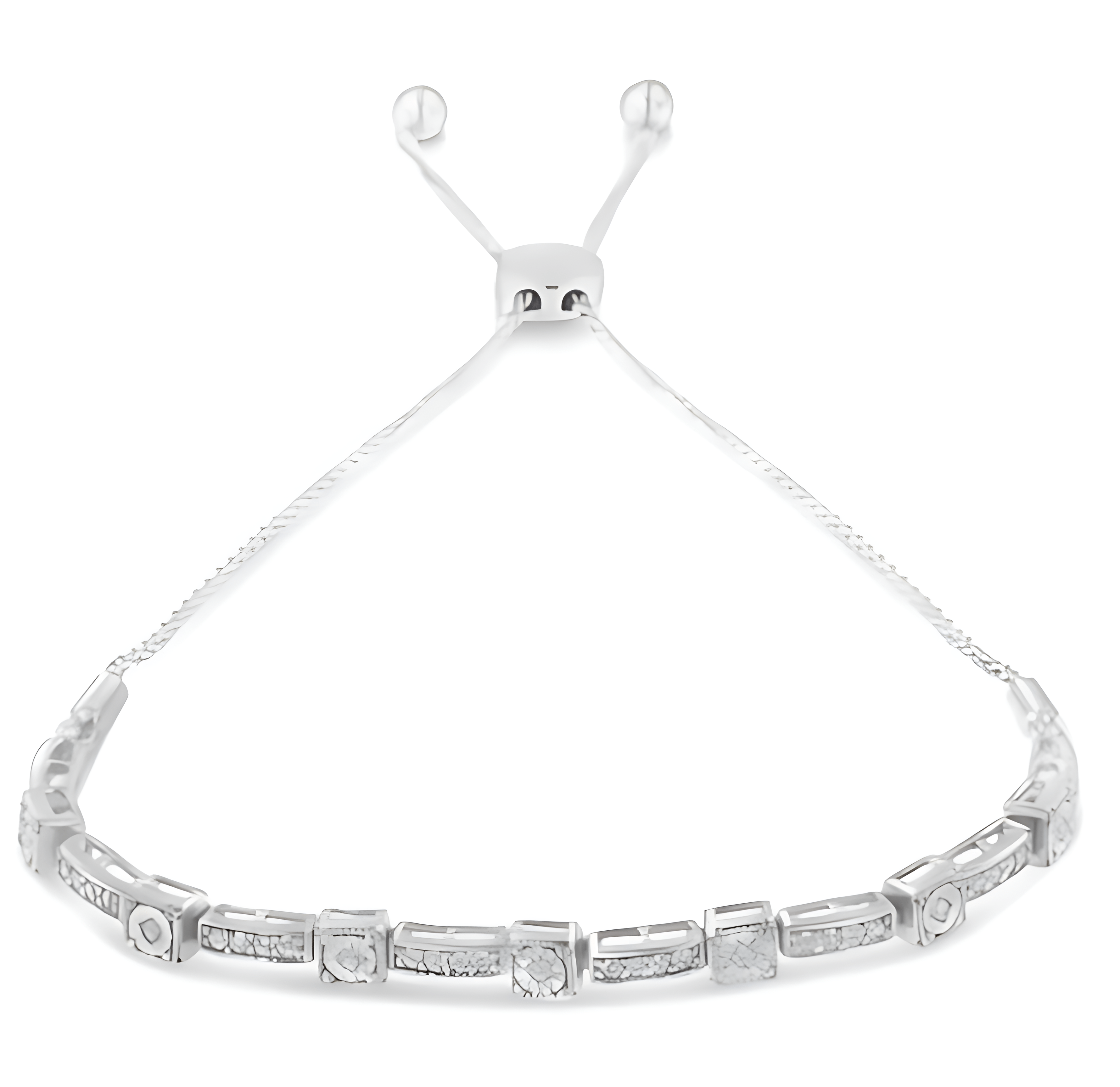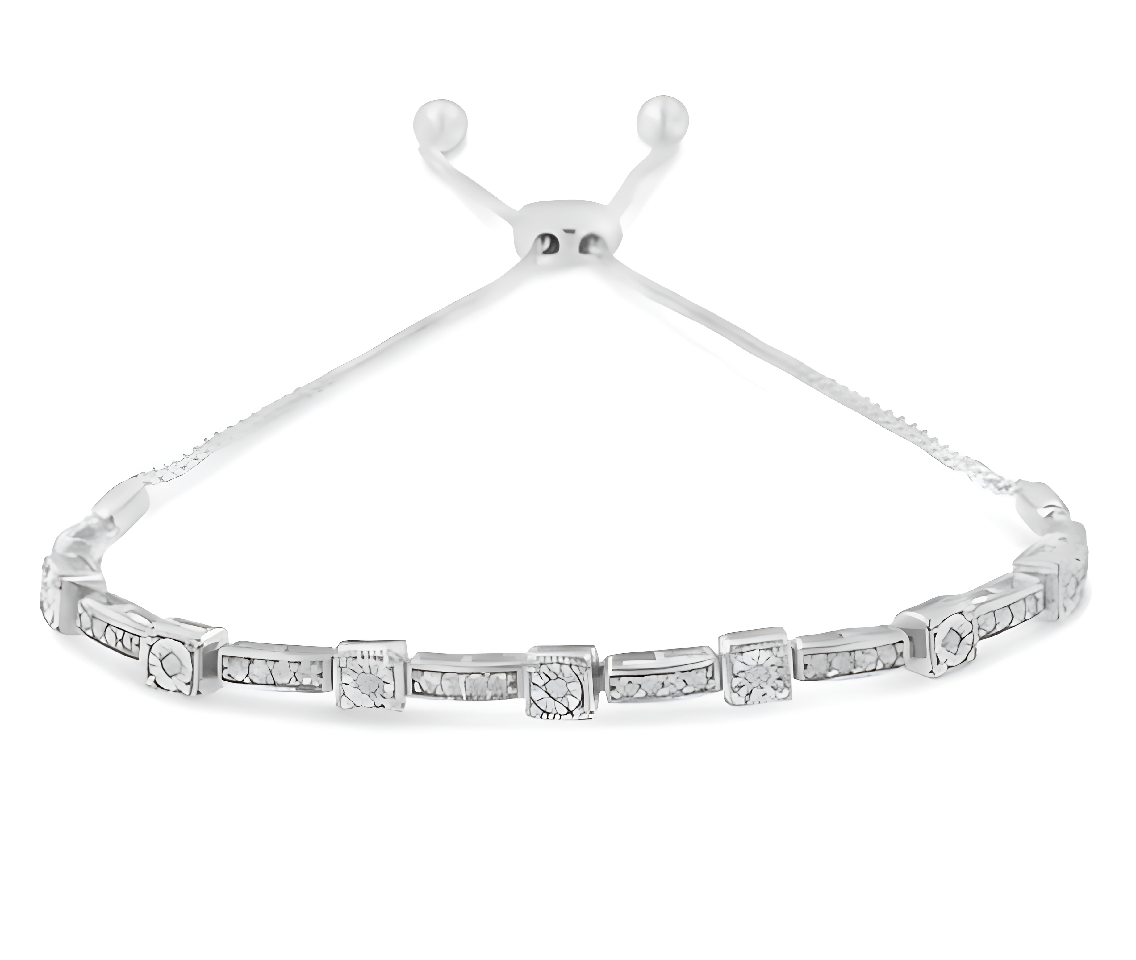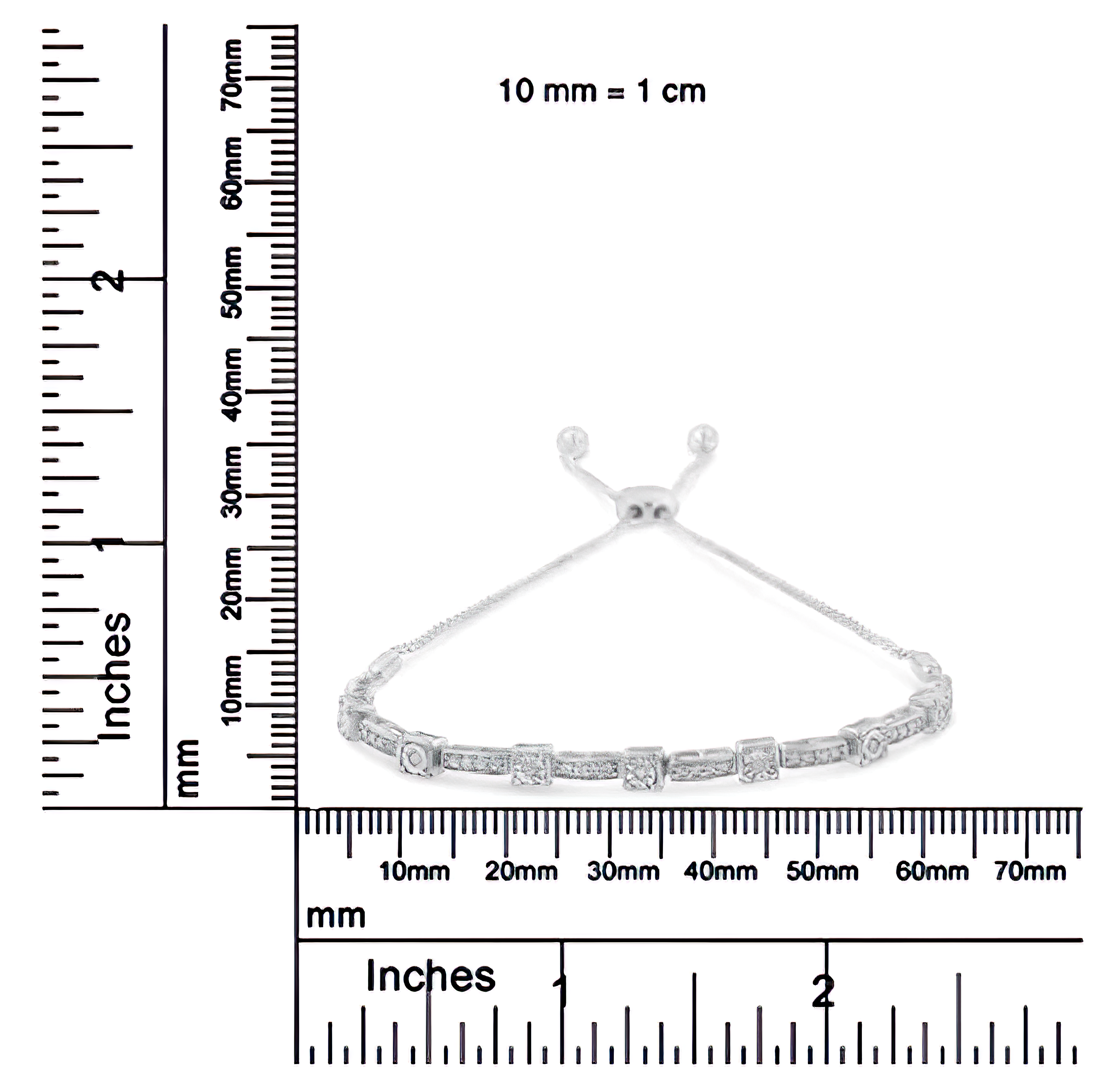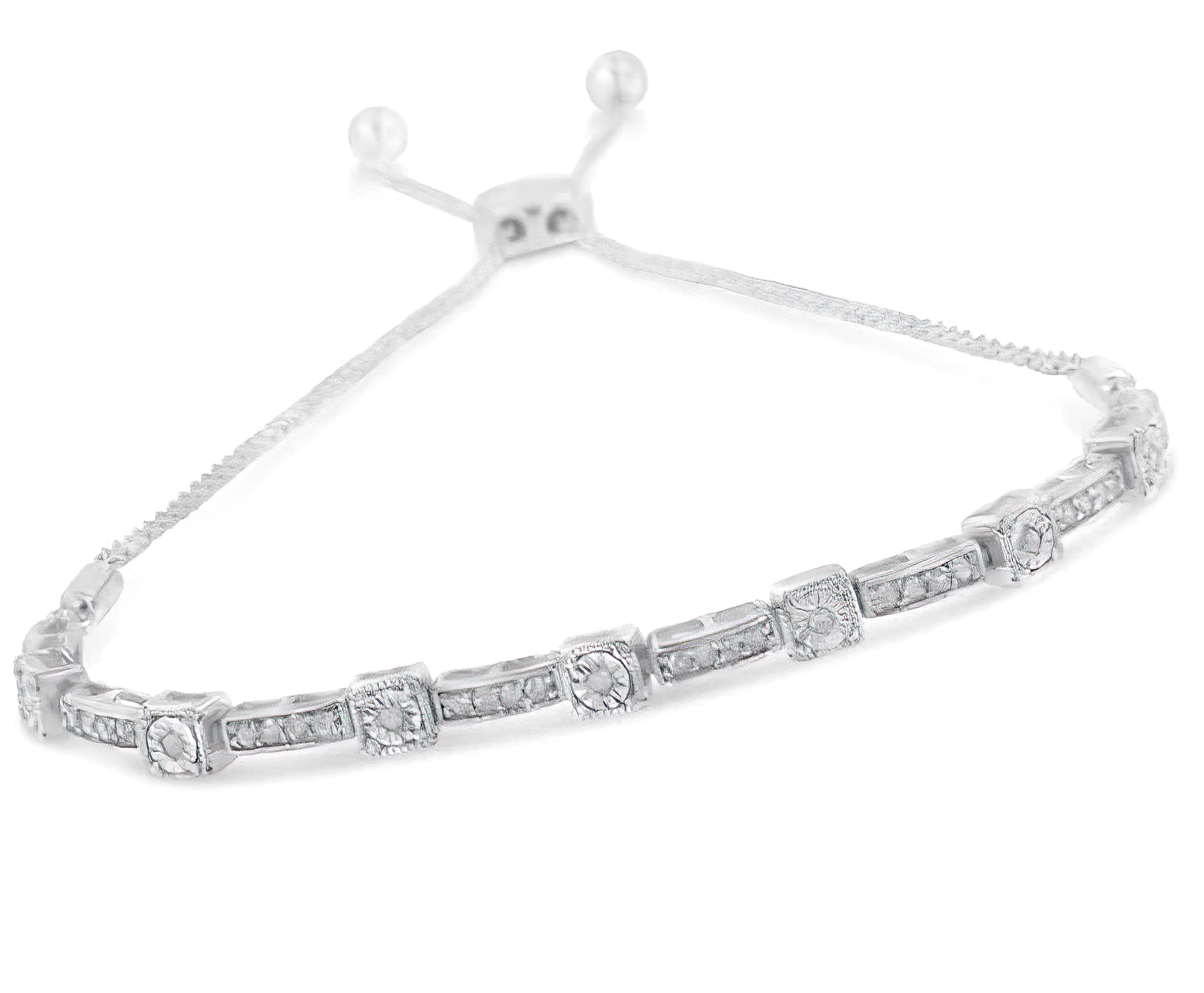 .925 Sterling Silver 1/4 Cttw Diamond 4”-10” Adjustable Bolo Alternating Square and Rectangle Bolo Bracelet (I-J Color, I3 Clarity)