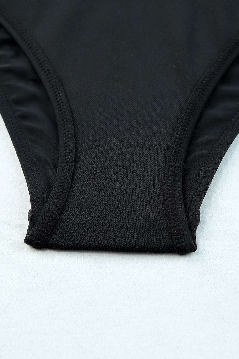 Black Rose Leopard Mesh Trim 2pcs Bikini Swimsuit