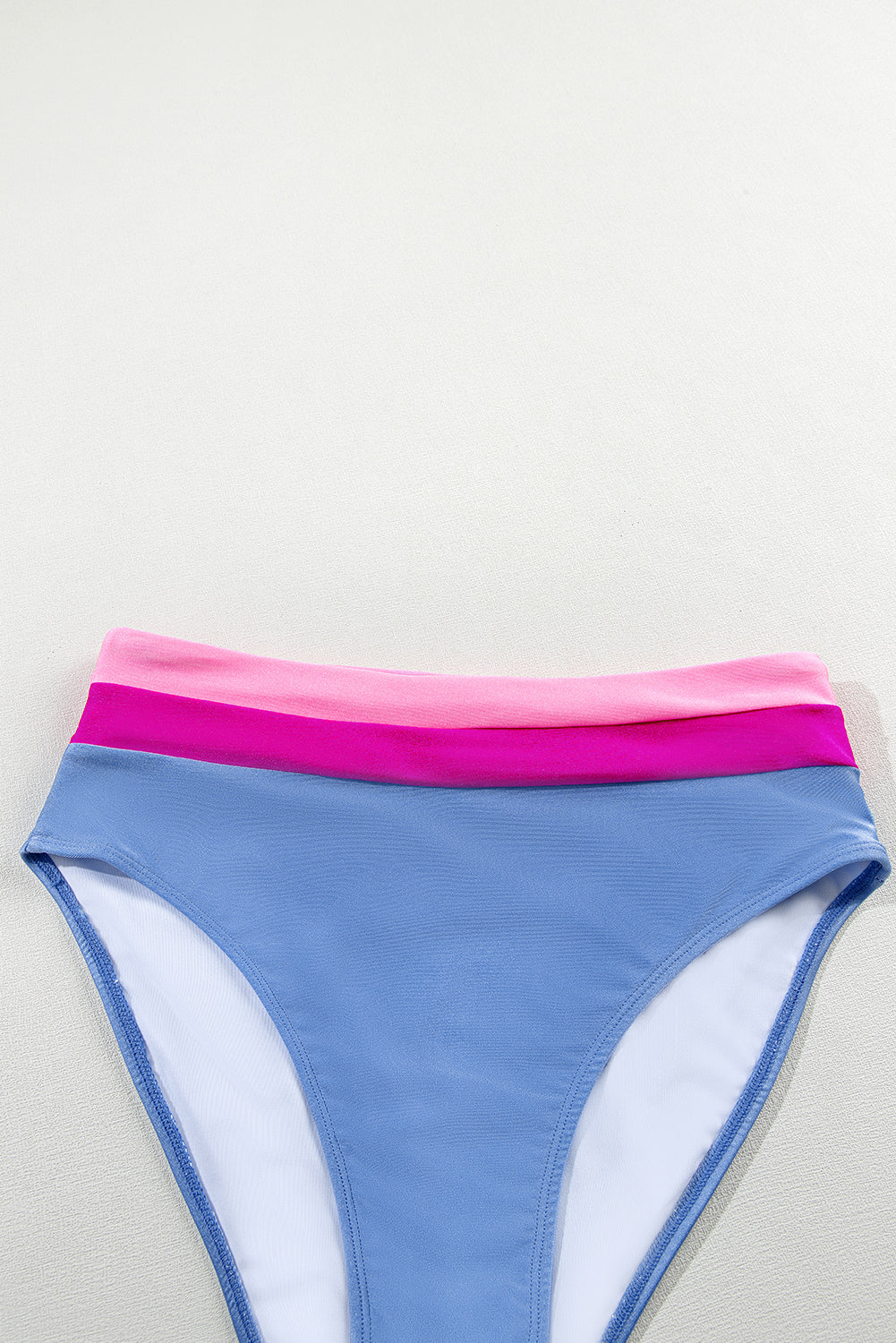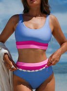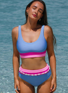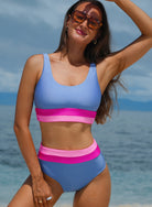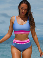 Light Blue Colorblock High Waisted Bikini Swimsuit