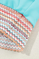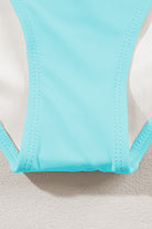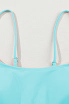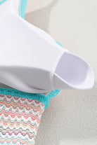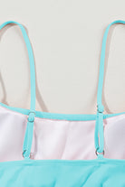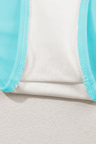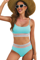 Sky Blue Striped Patchwork Spaghetti Strap High Waist Bikini Swimsuit
