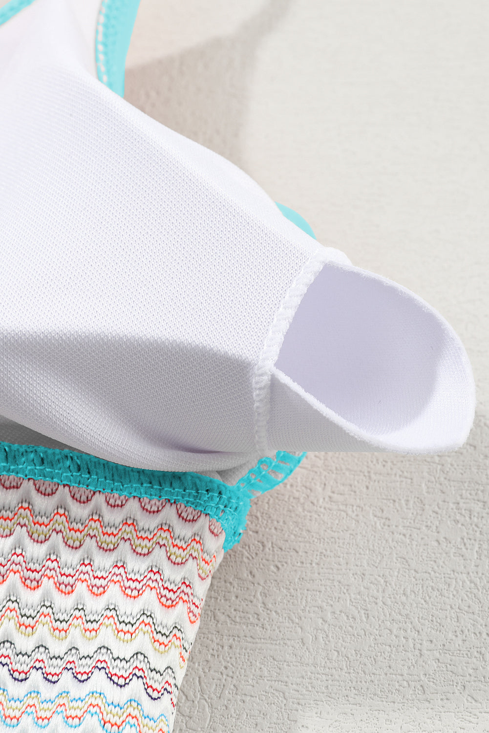 •With its unique striped patchwork design, the swimsuit is very trendy and chic