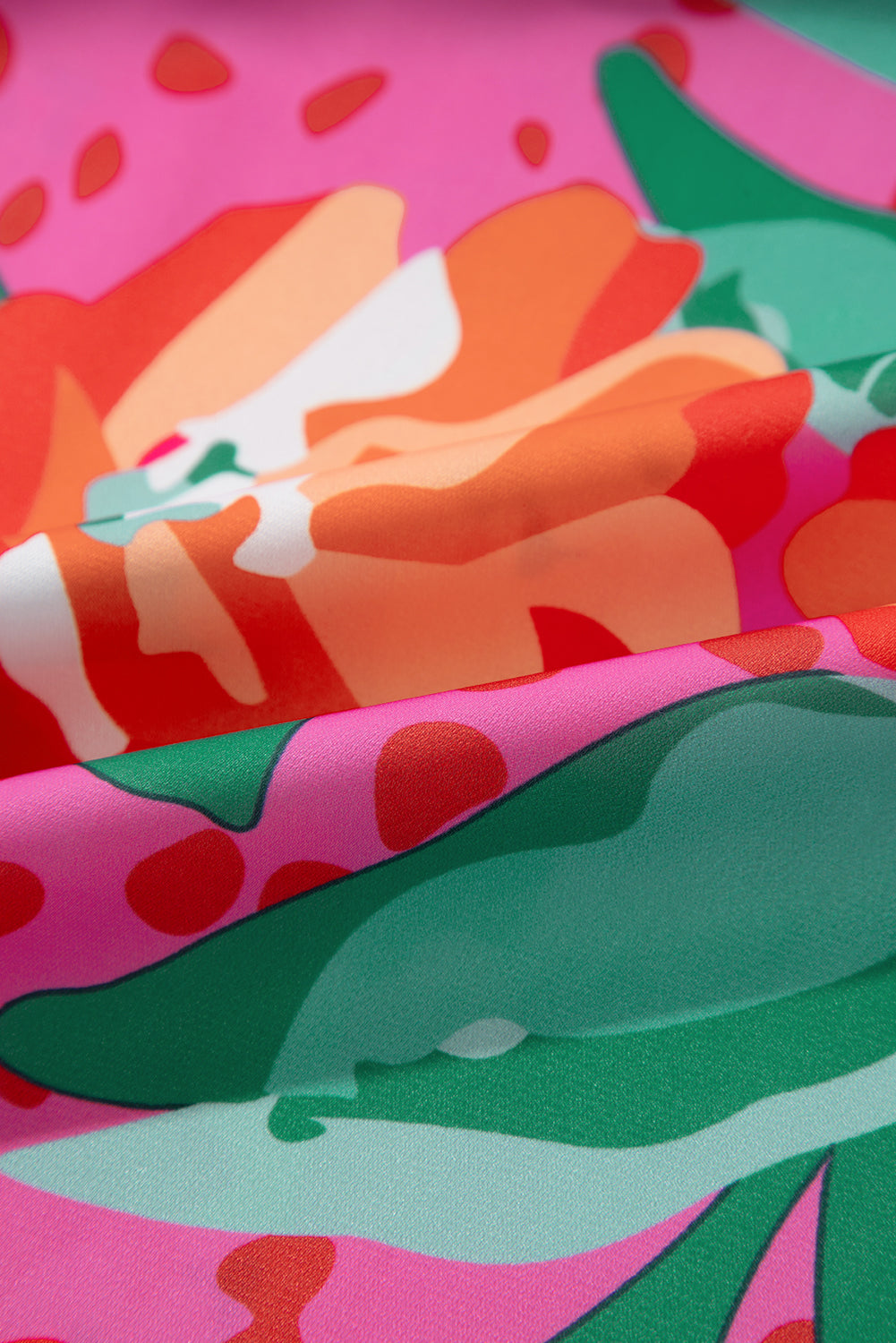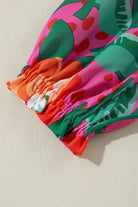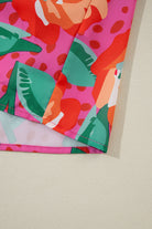 Rose Floral Print Pleated Ruffled O Neck Plus Size Blouse