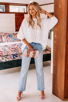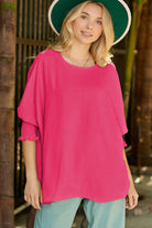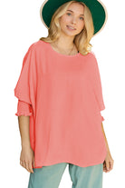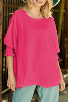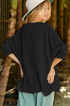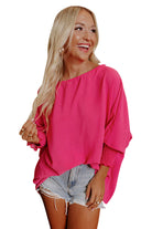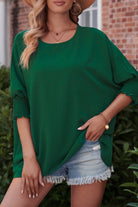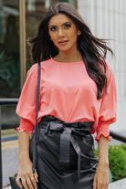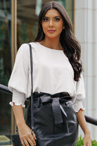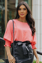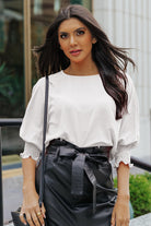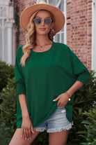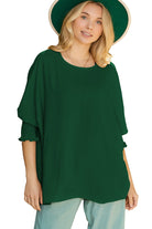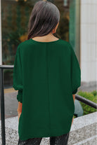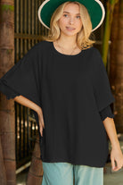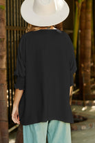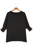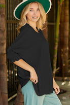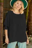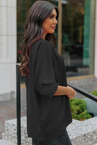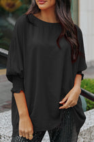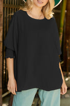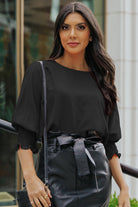 Black Plain Batwing Sleeve Business Casual Blouse for Women