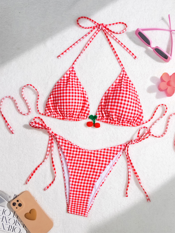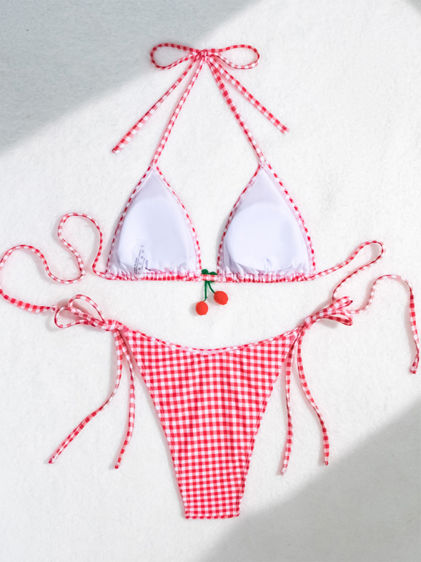 Fashionable sweet style backless striped bikini two-piece swimsuit