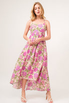 Embrace the beauty of the season in this floral high-low hem cami dress, perfect for sunny days and special occasions. The high-low hem adds a touch of drama and elegance to the dress, creating a flowy and romantic silhouette. The floral print lends a fresh and feminine vibe, making this dress a standout piece in your wardrobe. Whether you're going to a garden party or a brunch celebration, this cami dress is a stylish choice for any event. Dress it up with heels and statement jewelry for a more formal look, or keep it casually chic with sandals and a denim jacket. Stand out from the crowd in this floral high-low hem cami dress that exudes charm and grace, sure to make you feel radiant wherever you go.