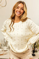 BiBi Pearl & Rhinestone Decor Long Sleeve Sweater