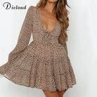 DICLOUD Sexy Leopard V Neck Dresses Women Spring Autumn Long Sleeve A Line Ruffles Sundress Chiffon Short Party Dress Female