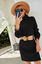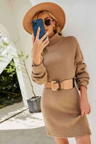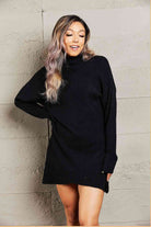 Double Take Rib-Knit Turtleneck Drop Shoulder Sweater Dress