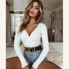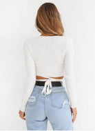 Sexy Women Ladies Summer Slim Crop Tops Long Sleeve T Shirt Casual Solid V Neck Knitted Short Tops