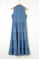 Blue Sleeveless Tiered Chambray Maxi Dress