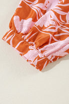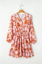 Brown Floral Puff Sleeve Smocked Waist Layered Dress