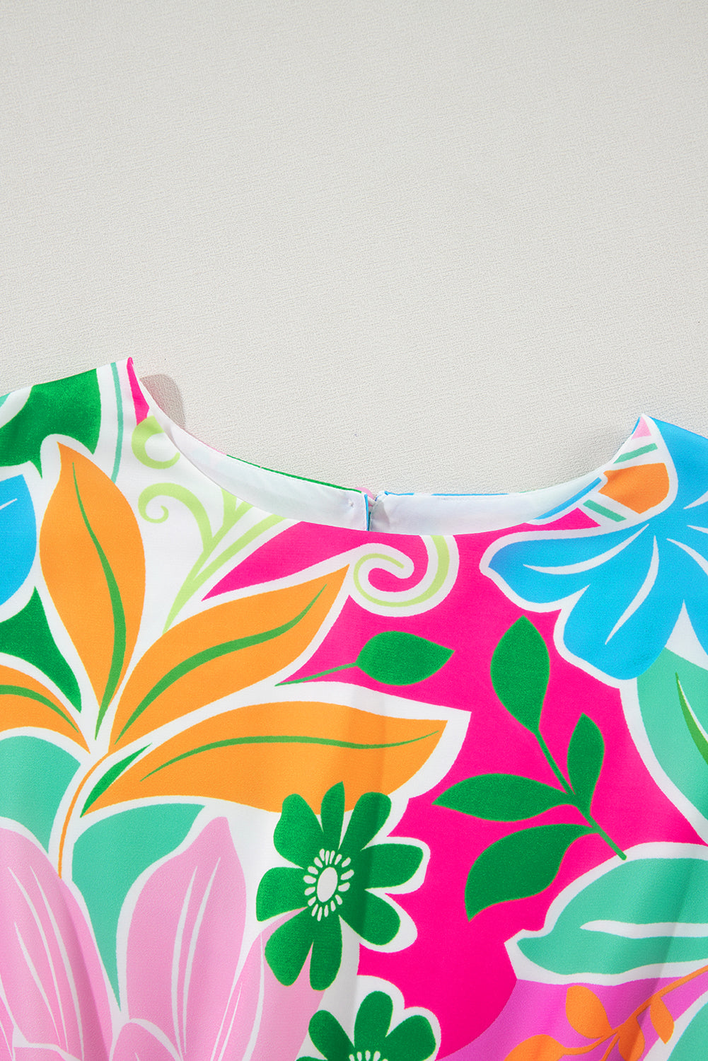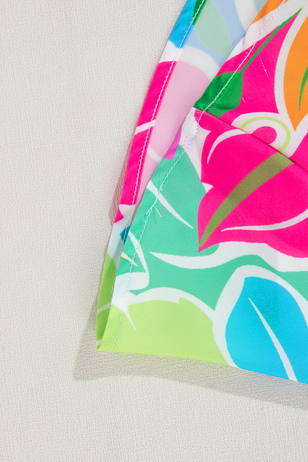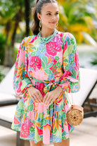 Green Multicolor Botanical Bubble Sleeve Mini Dress