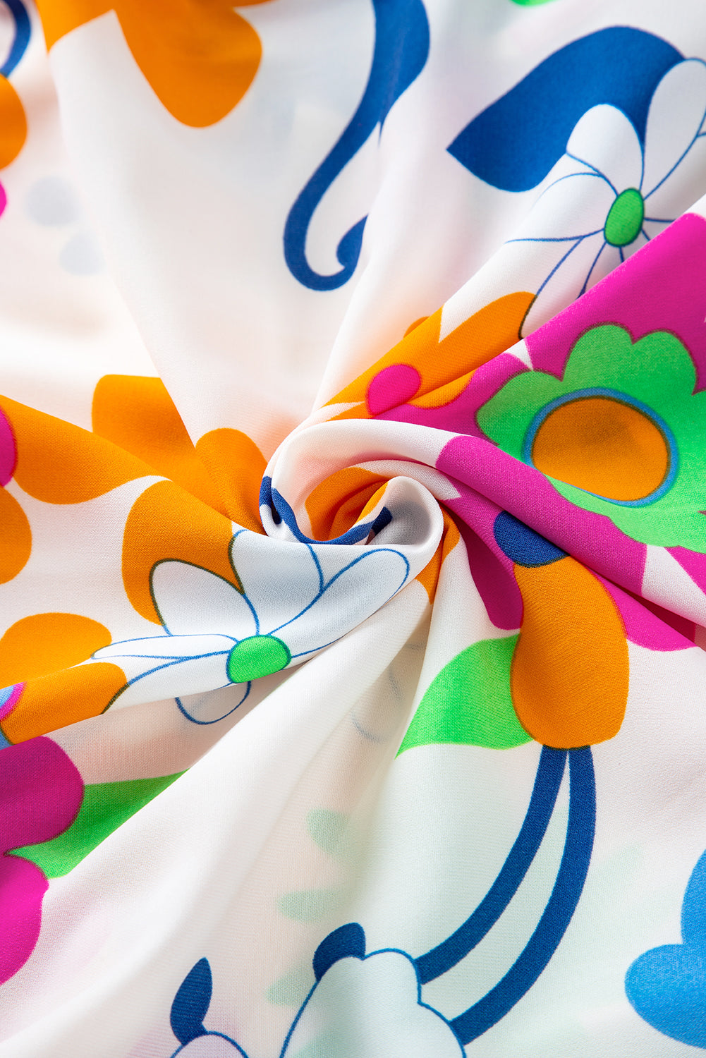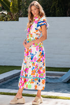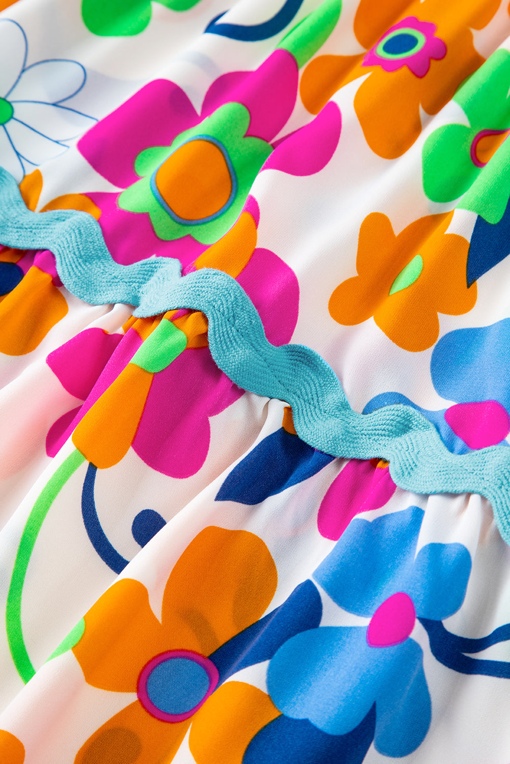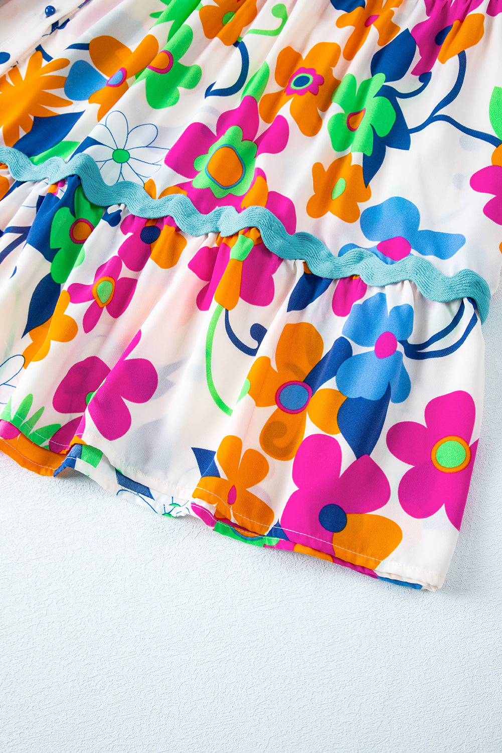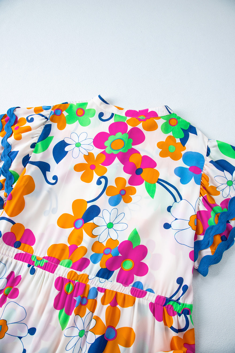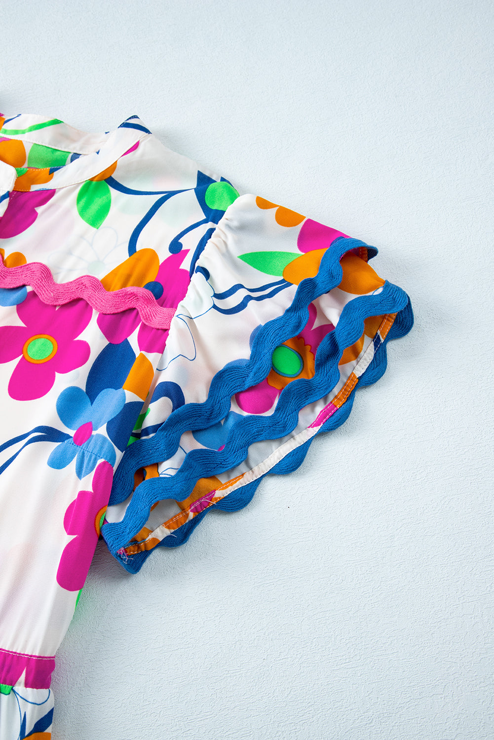 Pink Ricrac Trim Flutter Sleeve Buttoned Floral Maxi Dress