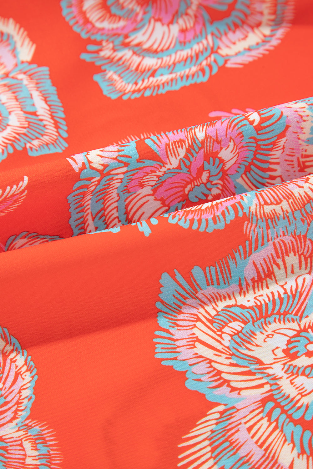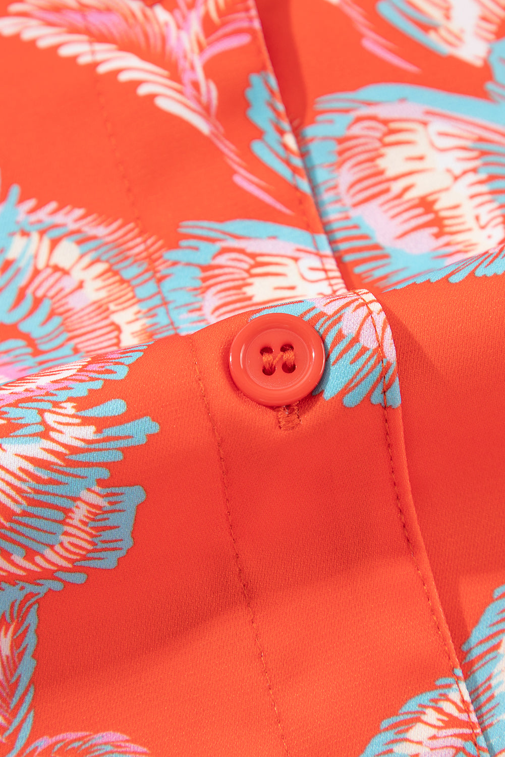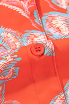 Red Floral Print Lapel Collar Loose Shirt Mini Dress