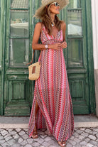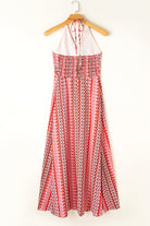 Red Halter Neck Tribal Boho Printed Backless Maxi Dress