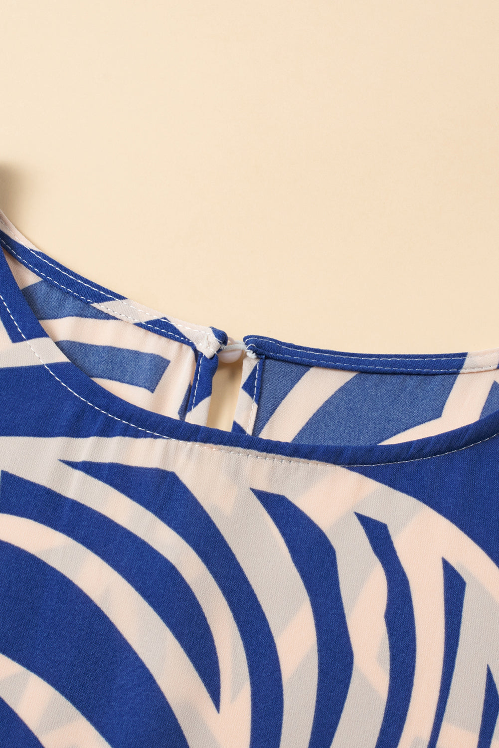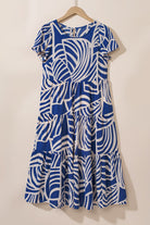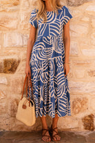 Sky Blue Boho Printed Short Sleeve Flare Tiered Dress
