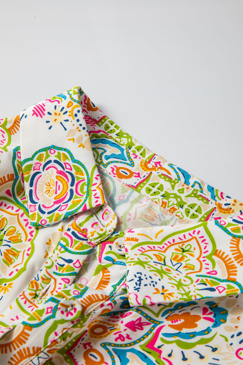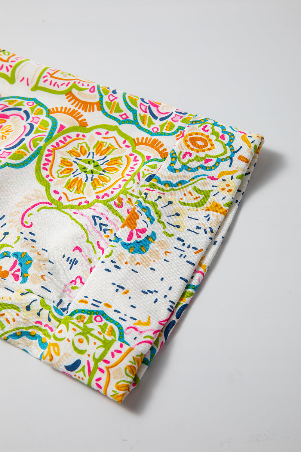 White Paisley Print Buttoned Knotted High Waist Midi Dress