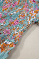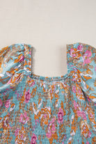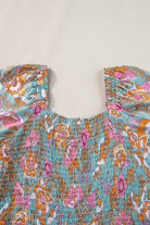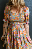 Yellow Smocked Bodice High Waist Puff Sleeve Floral Dress