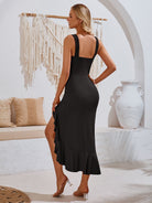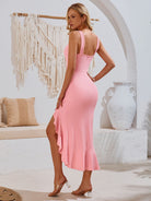 Ruffled V-Neck Wide Strap Midi Dress