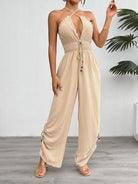 Women's Solid Backless Criss Cross Halter Neck V-neck Wide-Leg Jumpsuit H8B8TVWV6E
