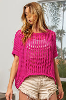 BiBi Round Neck Short Sleeve Openwork Knit Cover Up