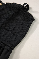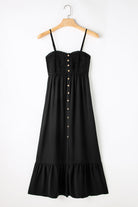 Black Spaghetti Straps Smocked Front Slit Buttoned Dress