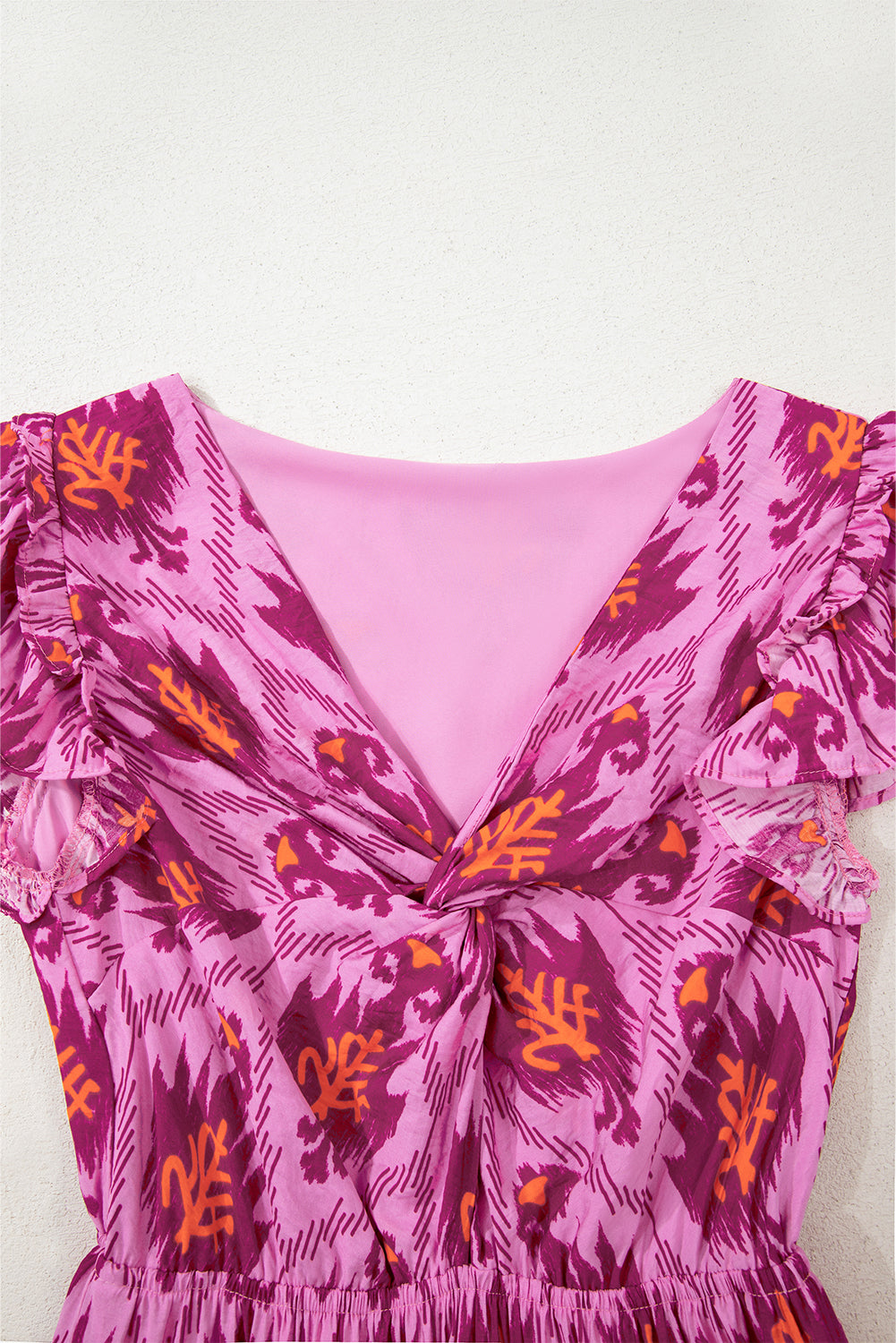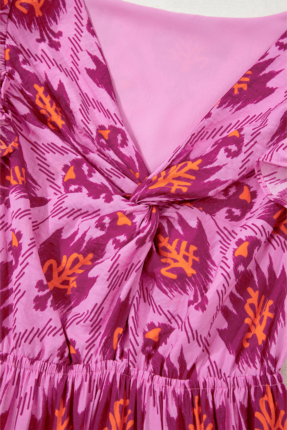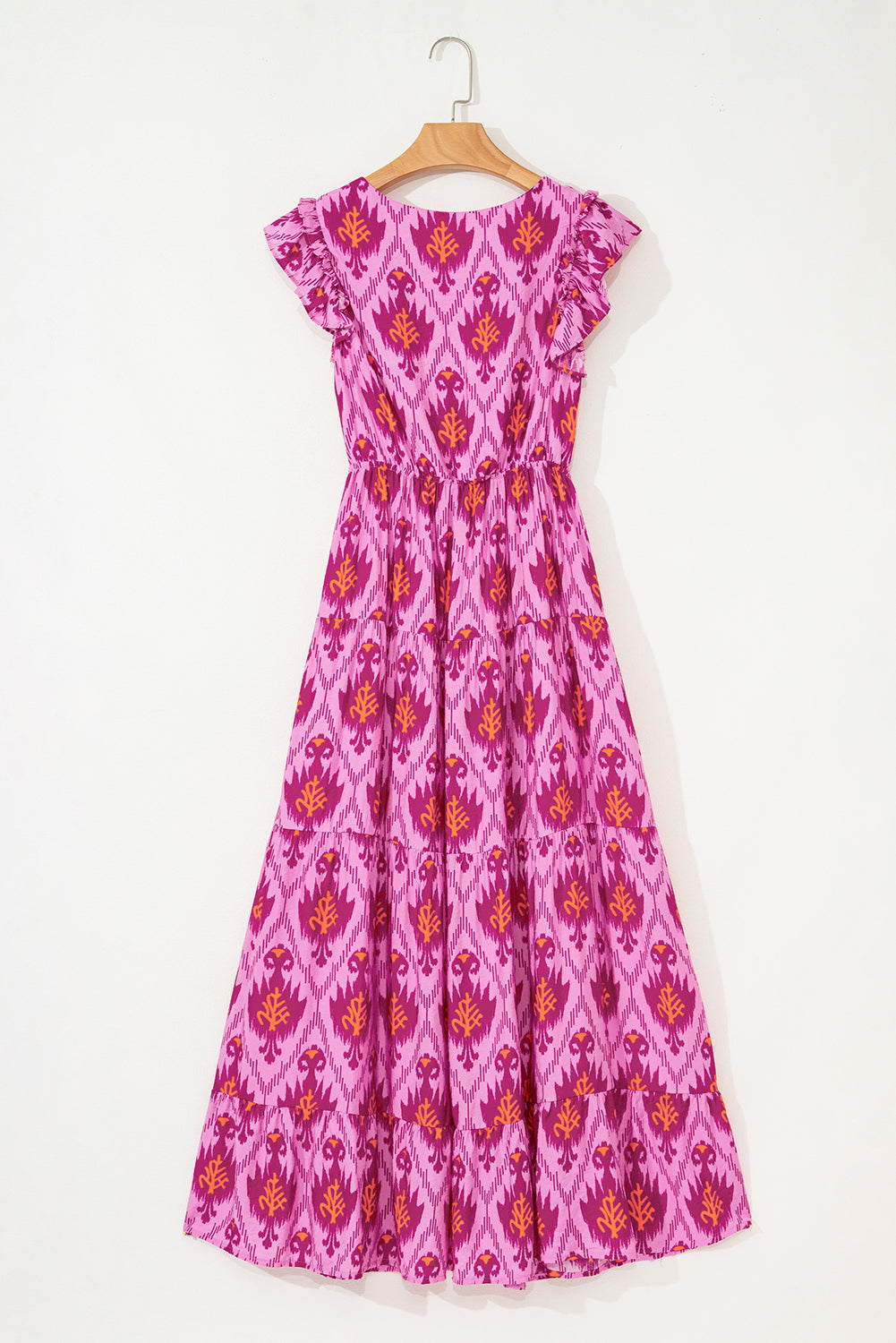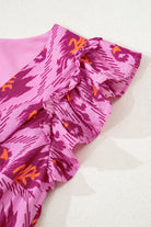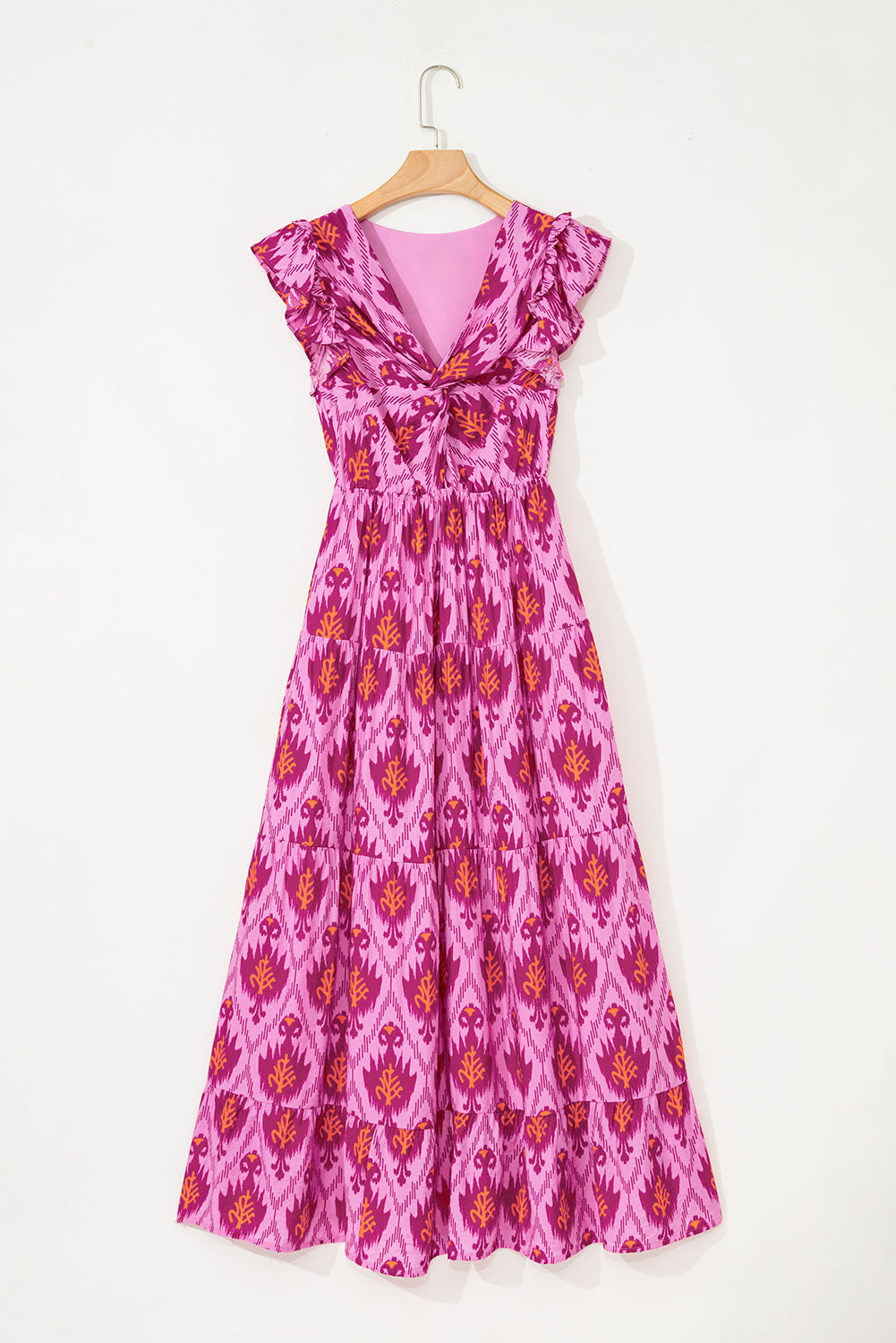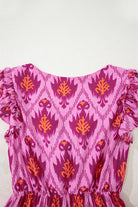 Bonbon Retro Print Twisted Front Ruffled Sleeve Maxi Dress