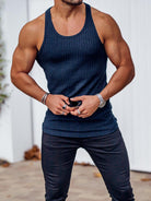Knitted Vertical Stripes Fitness Sports Slim Vest Men's Racerback Vest