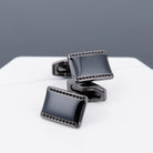 Mens Cufflinks Black Face Grey Copper Sleeve Stud