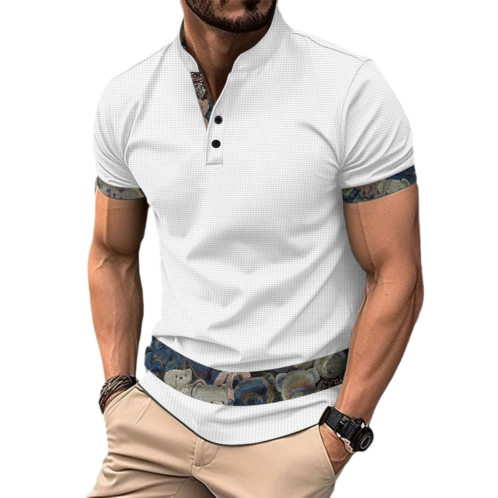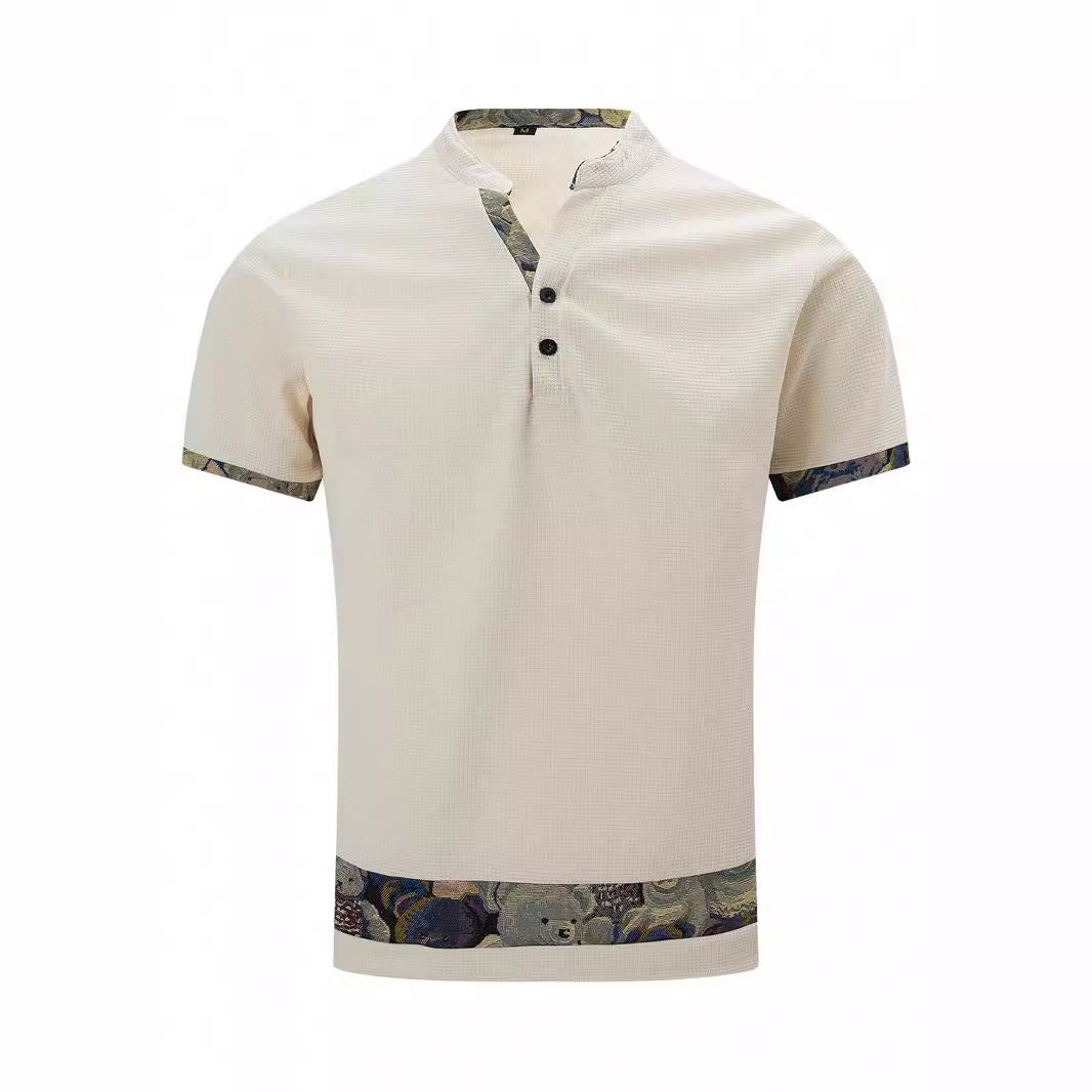 Color Stitching Stand-collar Short Sleeve Button Fashion