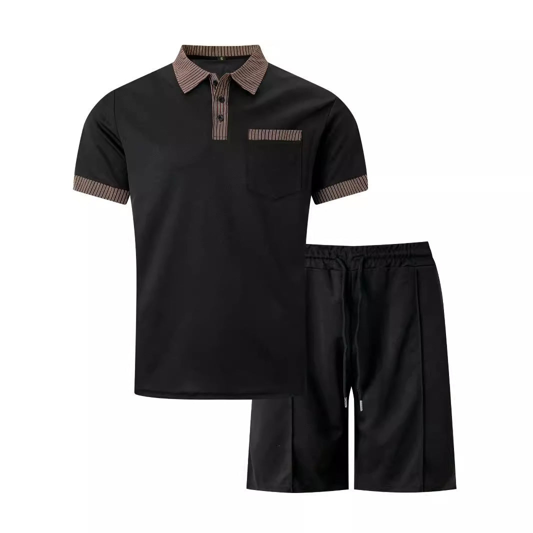 Men's Striped Color Matching Short Sleeve Suit