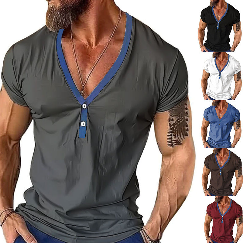 Short Sleeve Men's T-shirt Loose Henley Shirt