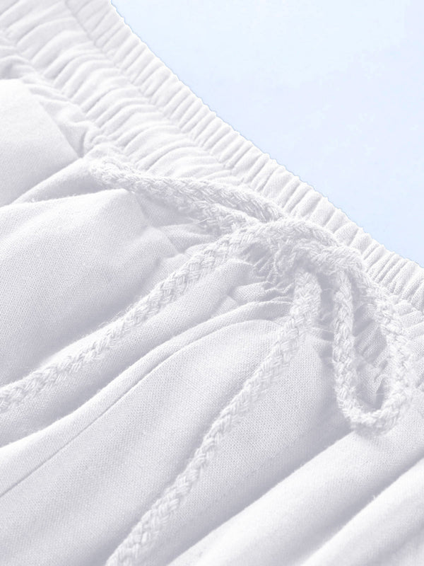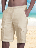 Linen Shorts Multi Pocket Tether Men's Beach Cargo Pants