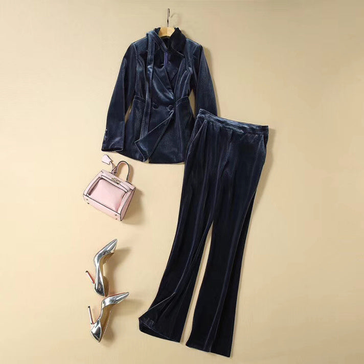 Temperament Suit Gold Velvet Jacket Trousers Business Suit