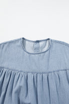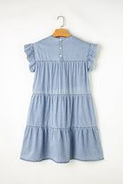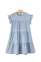 Beau Blue Ruffle Short Sleeve Tiered A-line Denim Dress