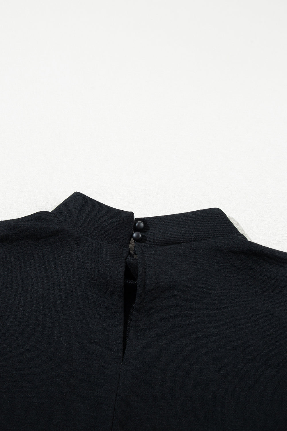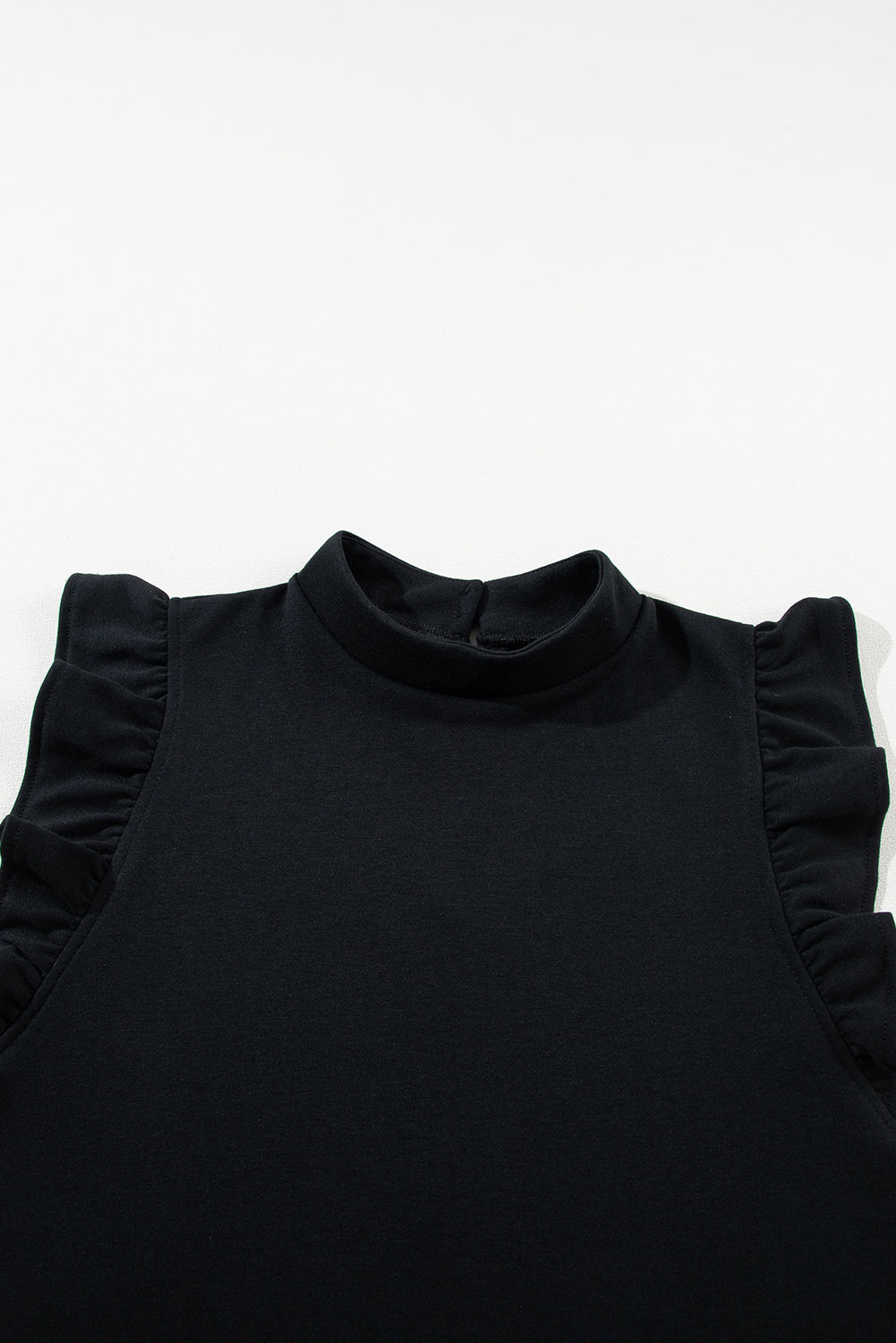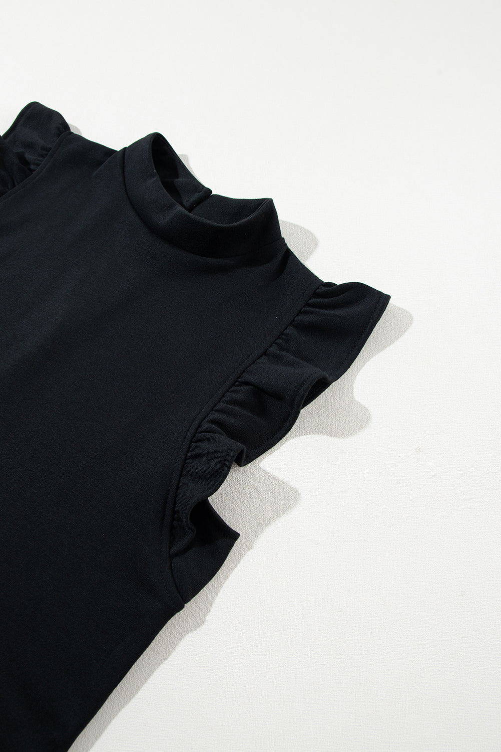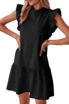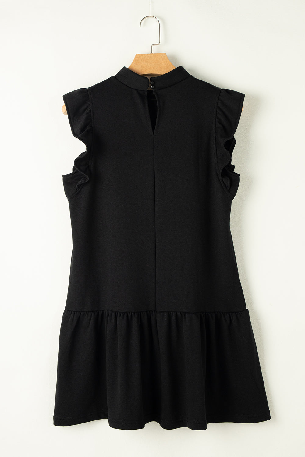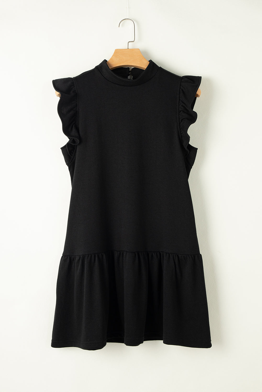 - Crew neck, flutter sleeve and ruffled hemline finished