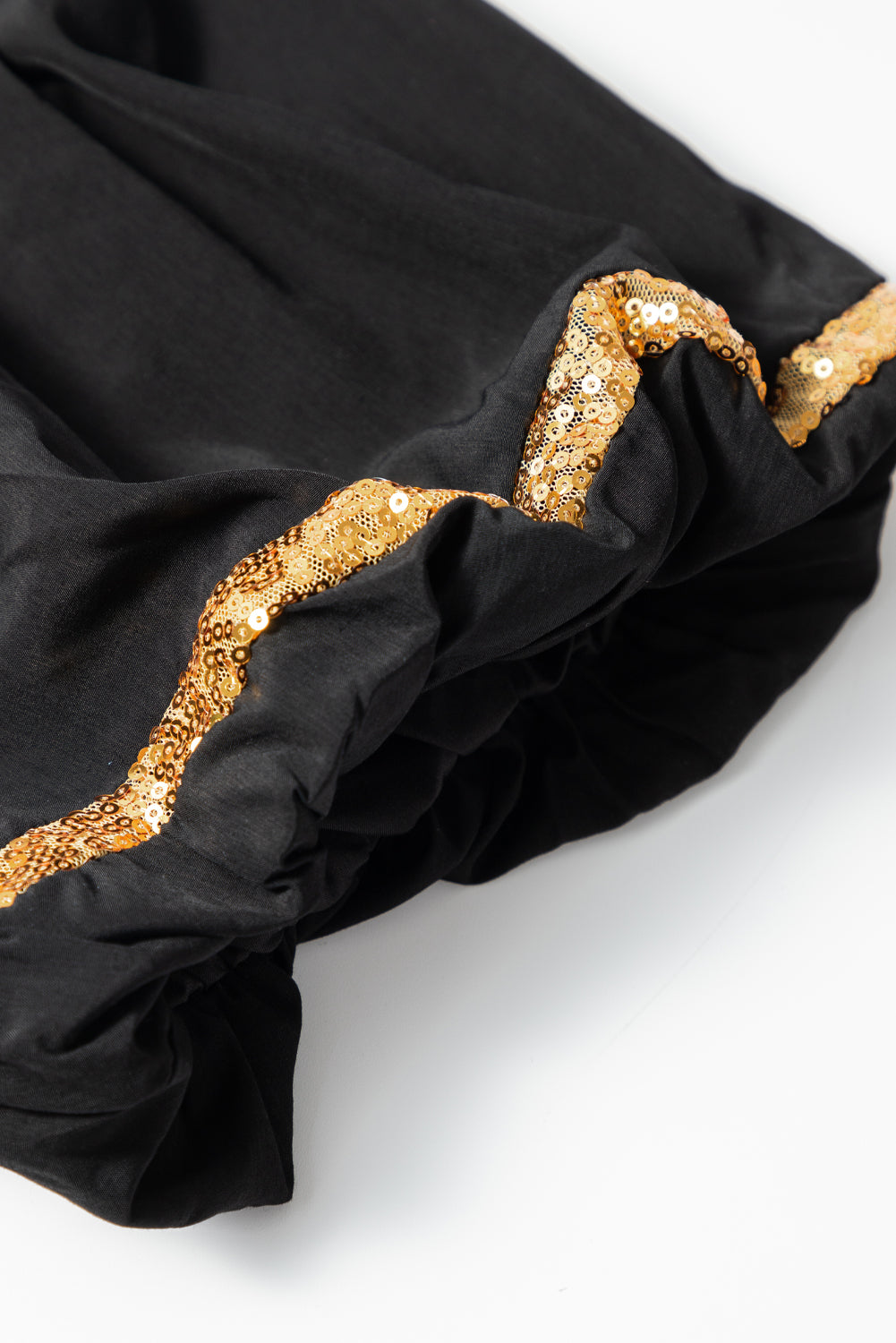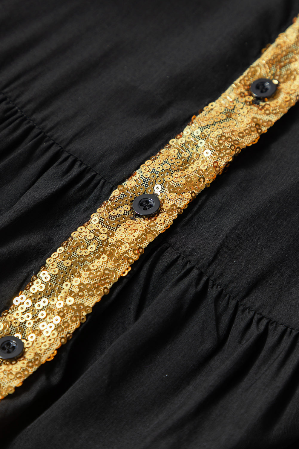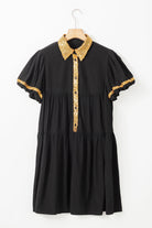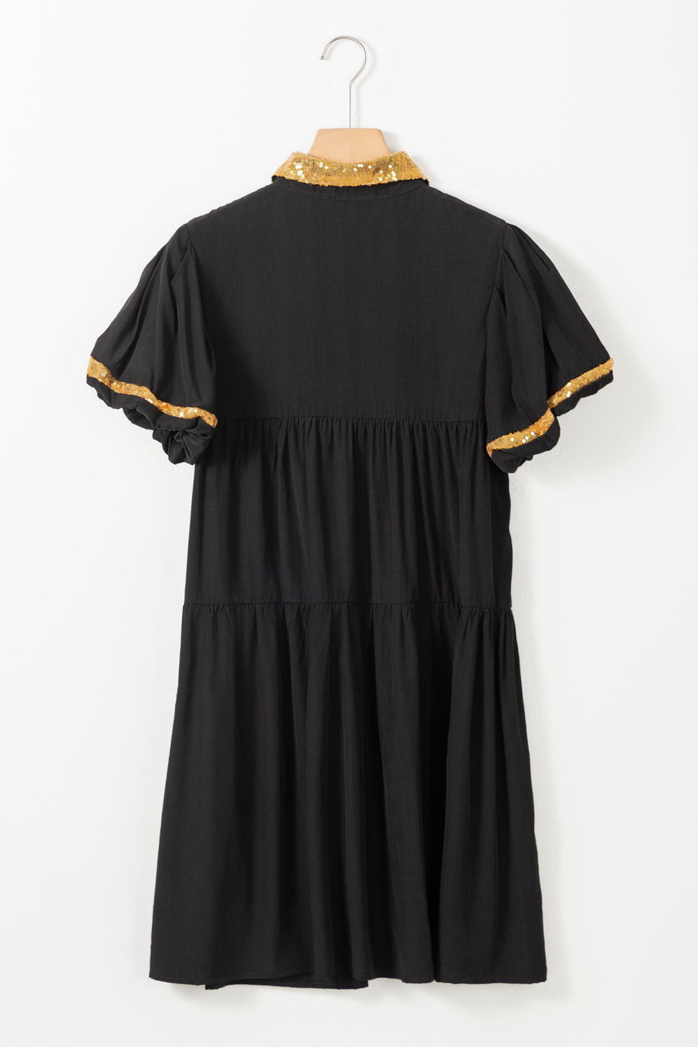 Black Sequin Trim Bubble Sleeve Game Day Shirt Dress