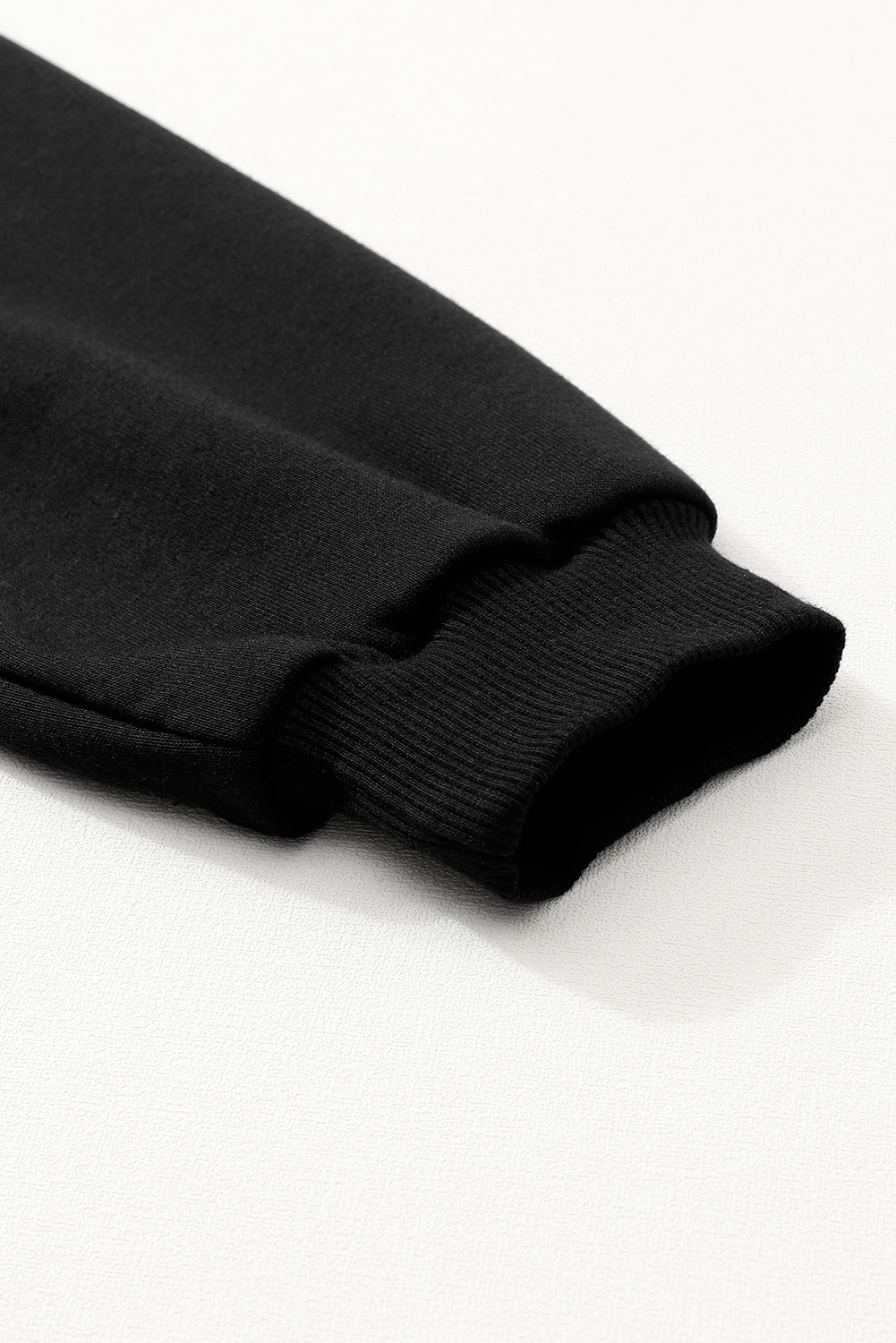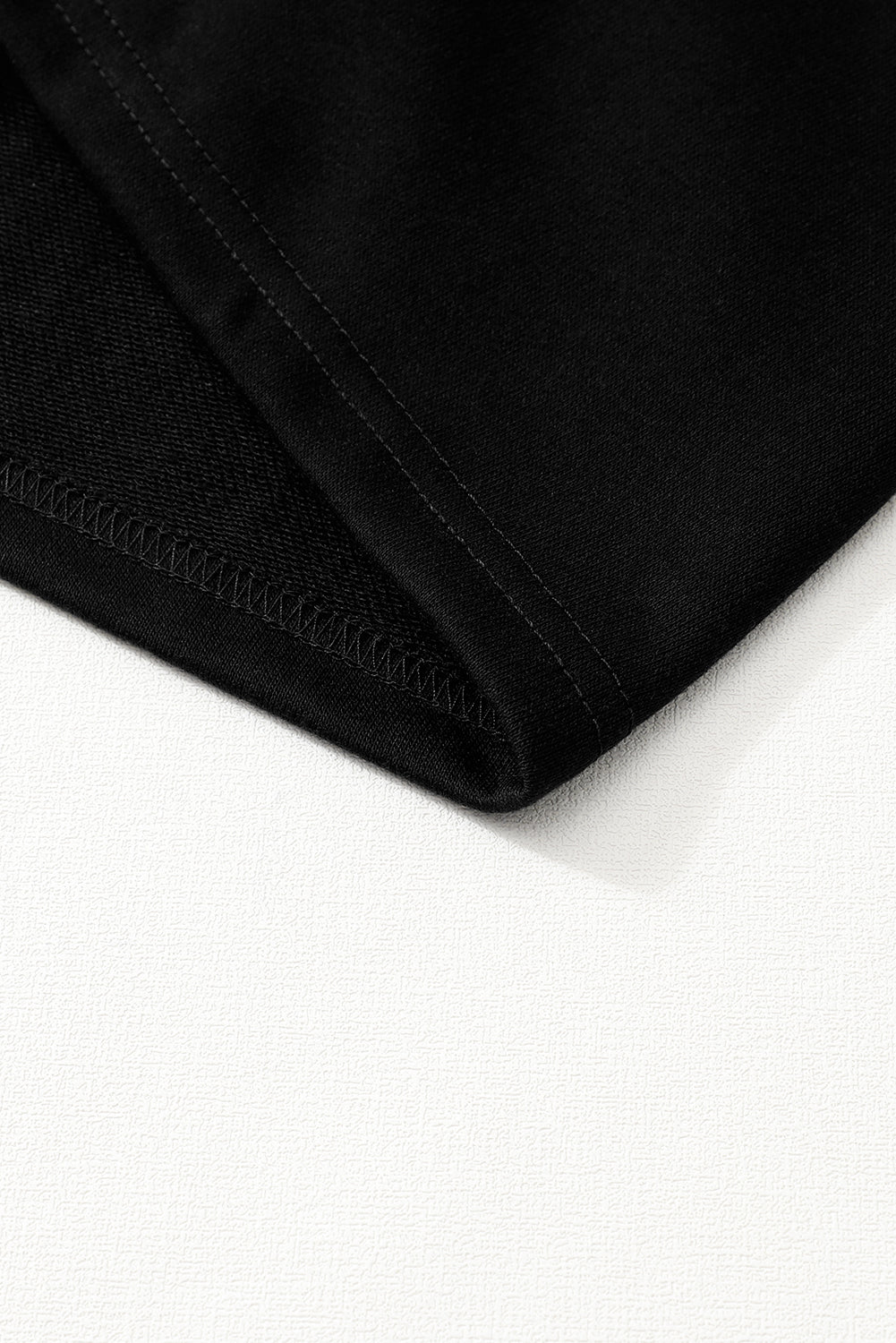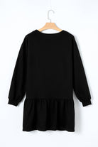 Black Solid Color Puff Sleeve Ruffle Hem Mini Dress