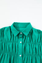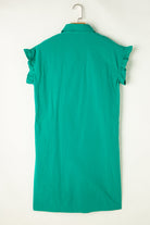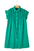 Bright Green Shirred Ruffle Sleeve Button Up Short Dress