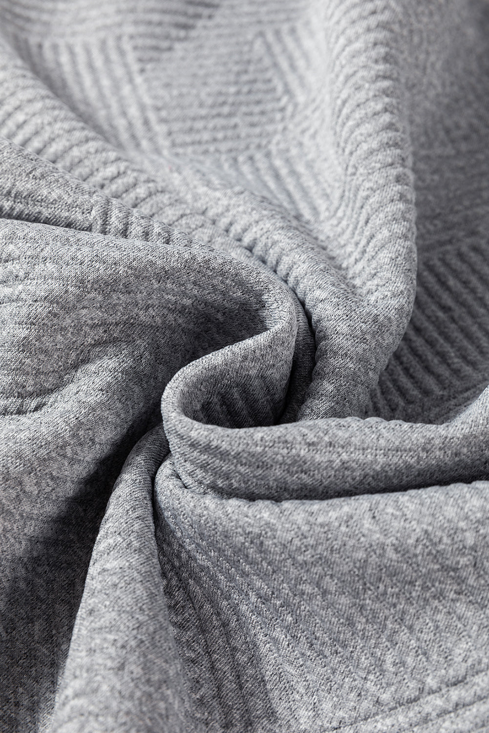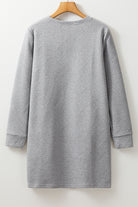 Gray Solid Color Textured Long Sleeve Shift Dress