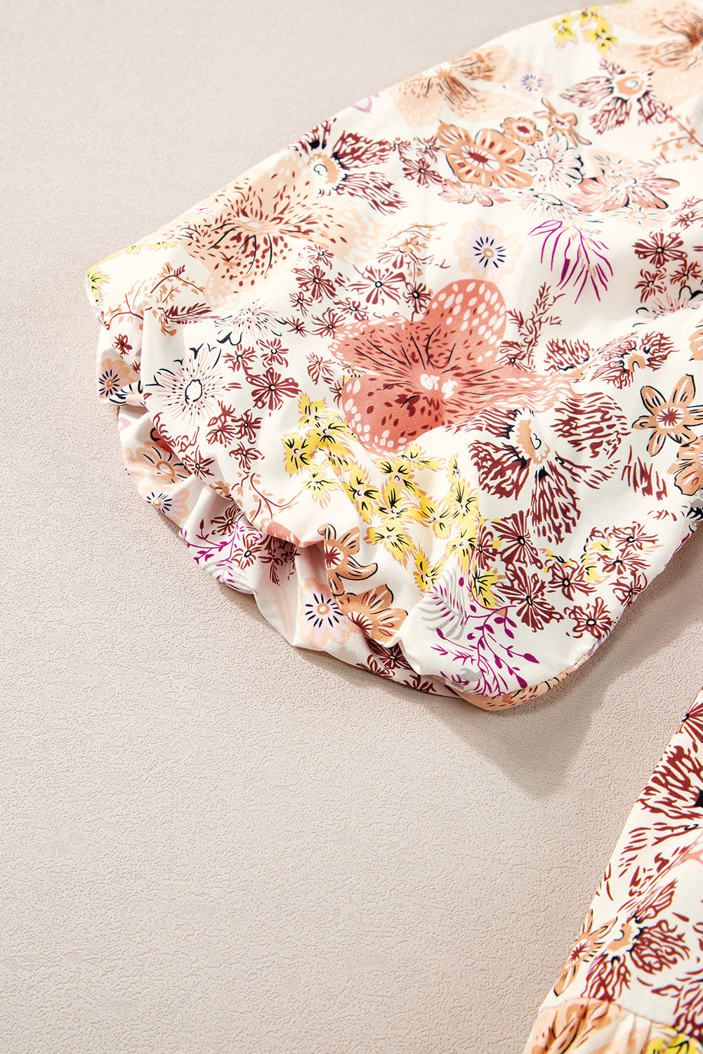 Khaki Floral Short Sleeve Square Neck Mini Dress