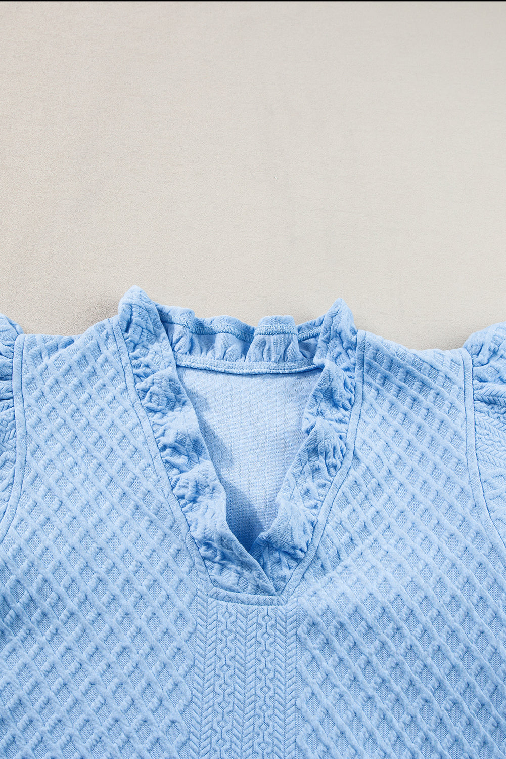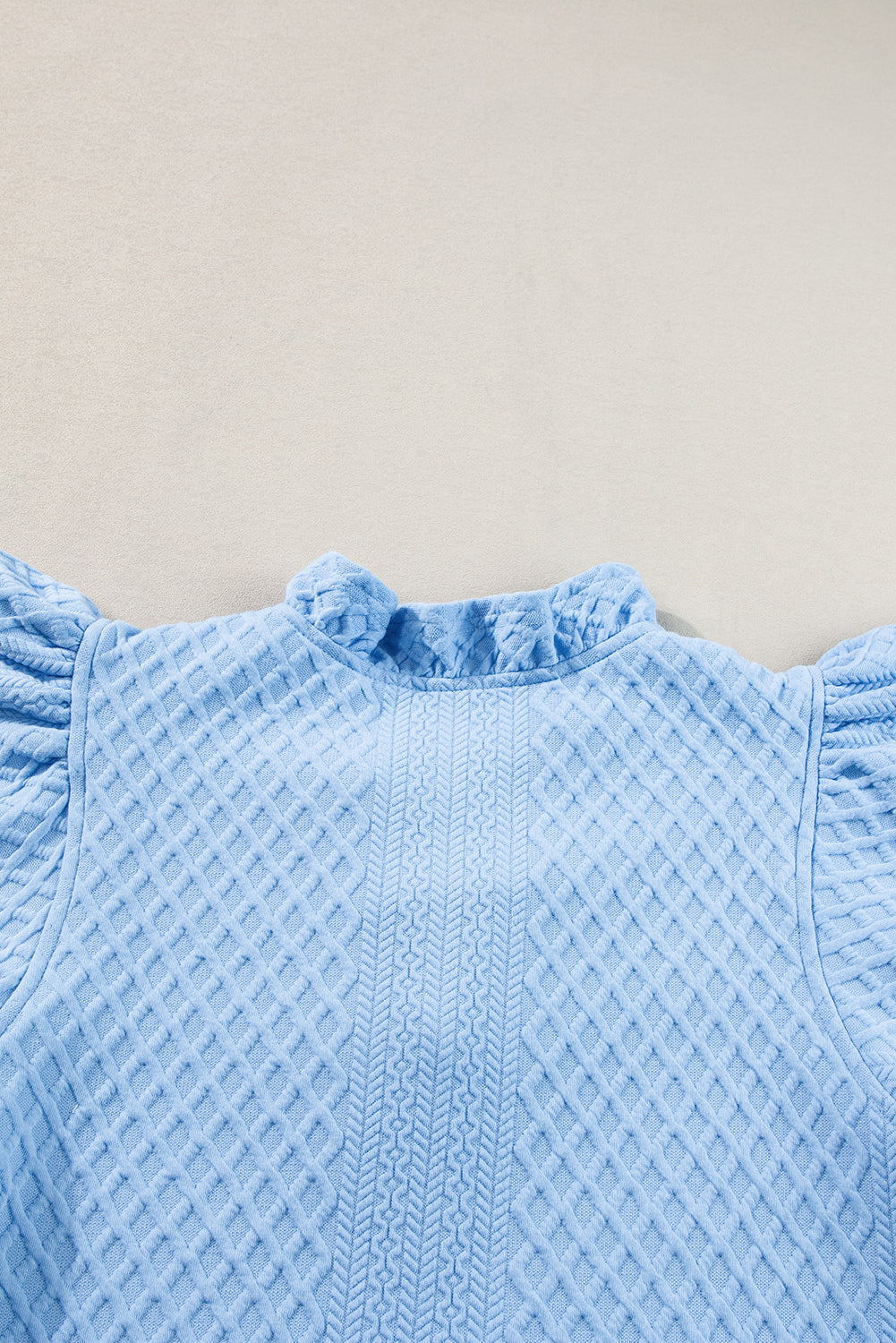 - Effortlessly stylish with a ruffled V-neck and puff sleeve