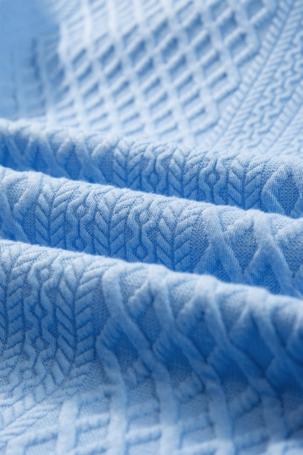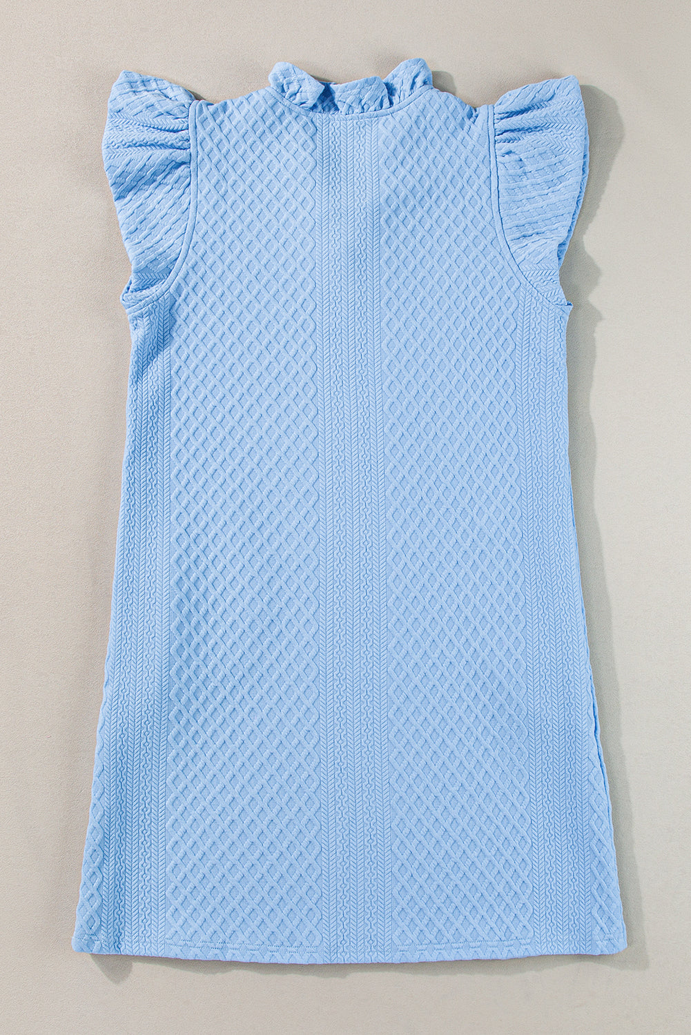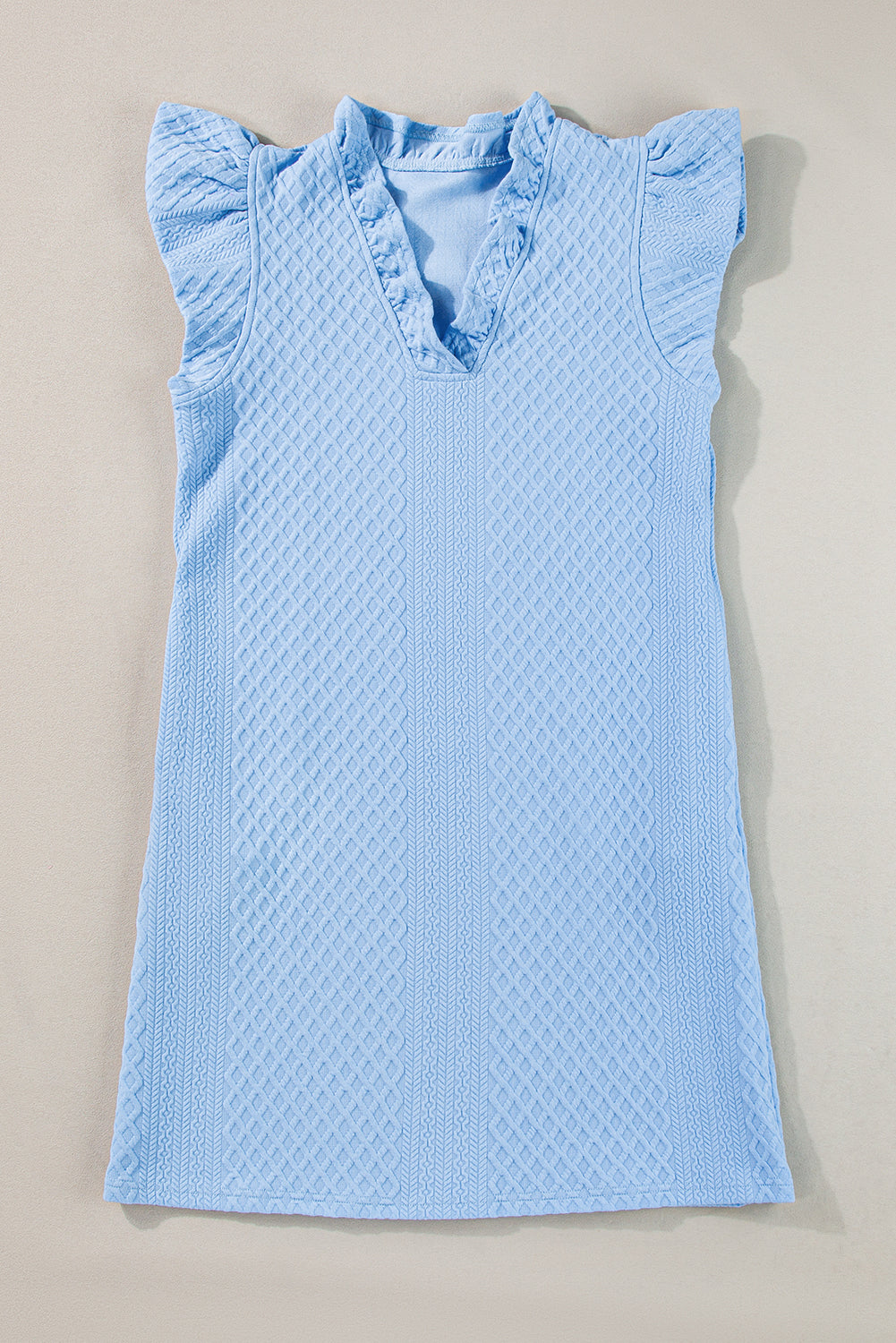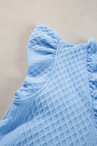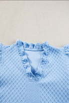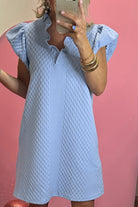 Light Blue Textured Puff Sleeve Ruffled V Neck Shift Mini Dress