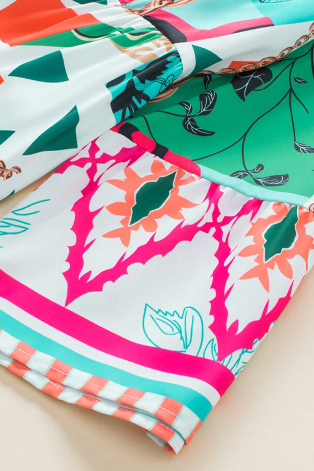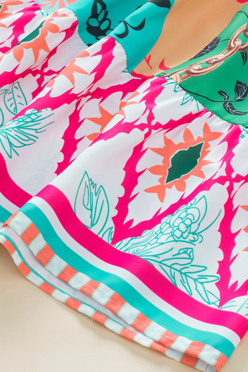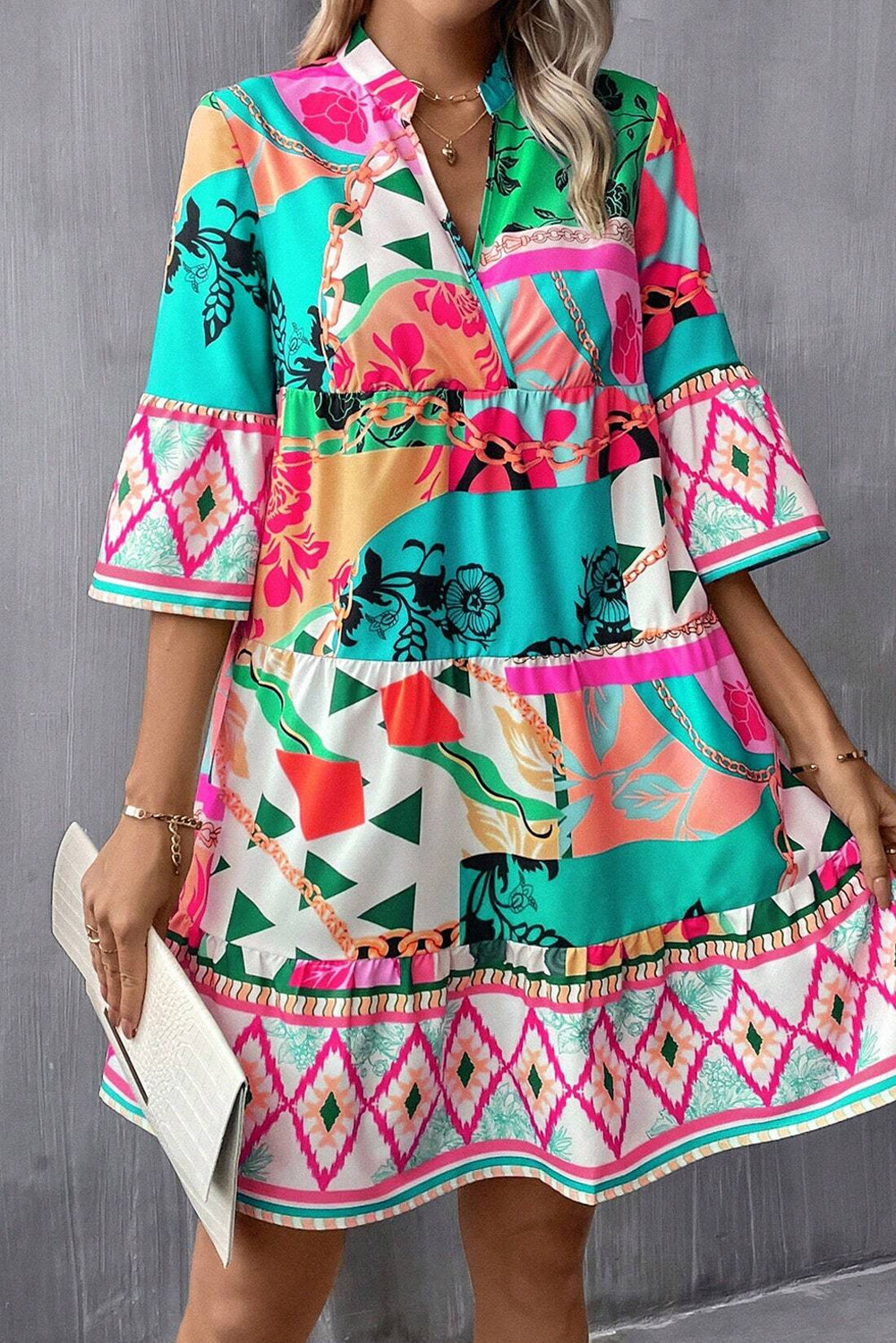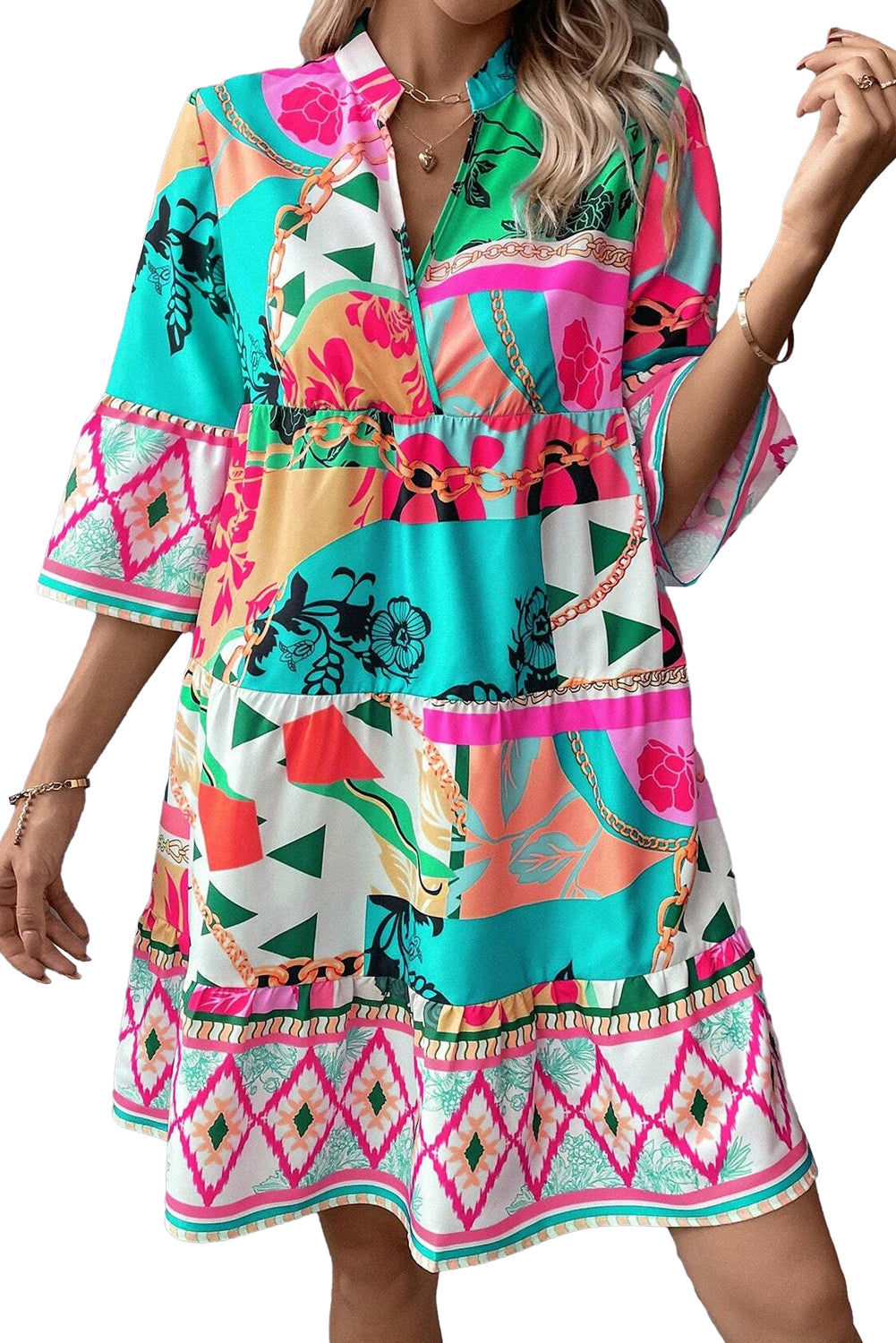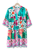 Multicolour Abstract Printed Half Sleeve Notched Neck Mini Dress