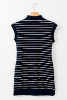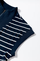 Navy Blue Quarter Zip Collared Cap Sleeve Mini Dress
