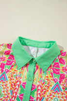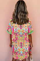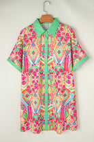 Orange Geometric Print Contrast Short Sleeve Shirt Dress
