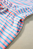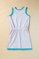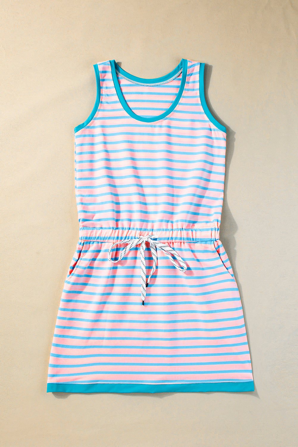 Pink Stripe Contrast Trim Pocketed Casual Tank Dress
