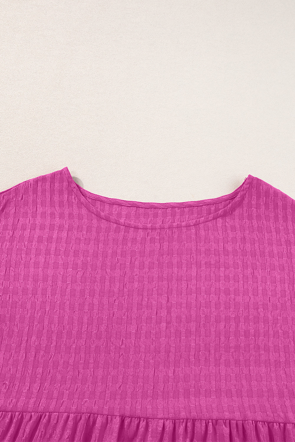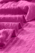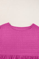 Rose Red Textured Ruffled Short Sleeve Mini Dress