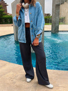 Autumn and winter jacket washed denim cotton loose retro water blue lapel double pocket jacket