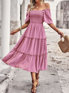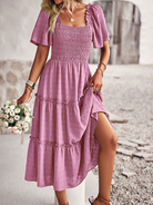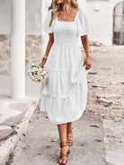 Bubble Sleeved Draw-Pleated Tunic Dress HWF579HB6R